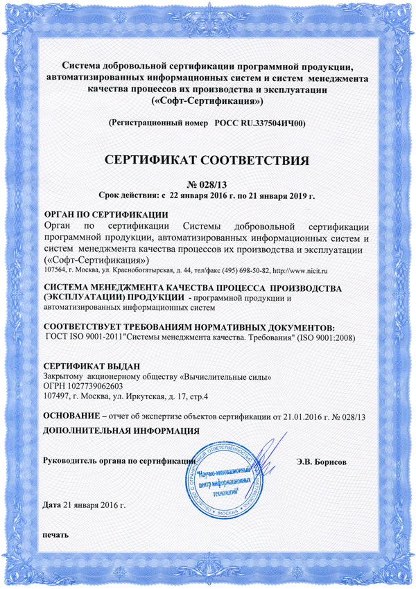Компания АО “Вычислительные силы” - разработчик делового и финансового программного обеспечения для предприятий и финансовых учреждений. Предлагаемое компанией ПО реализовано в архитектуре "клиент-сервер" с использованием новейших технологий интернет.